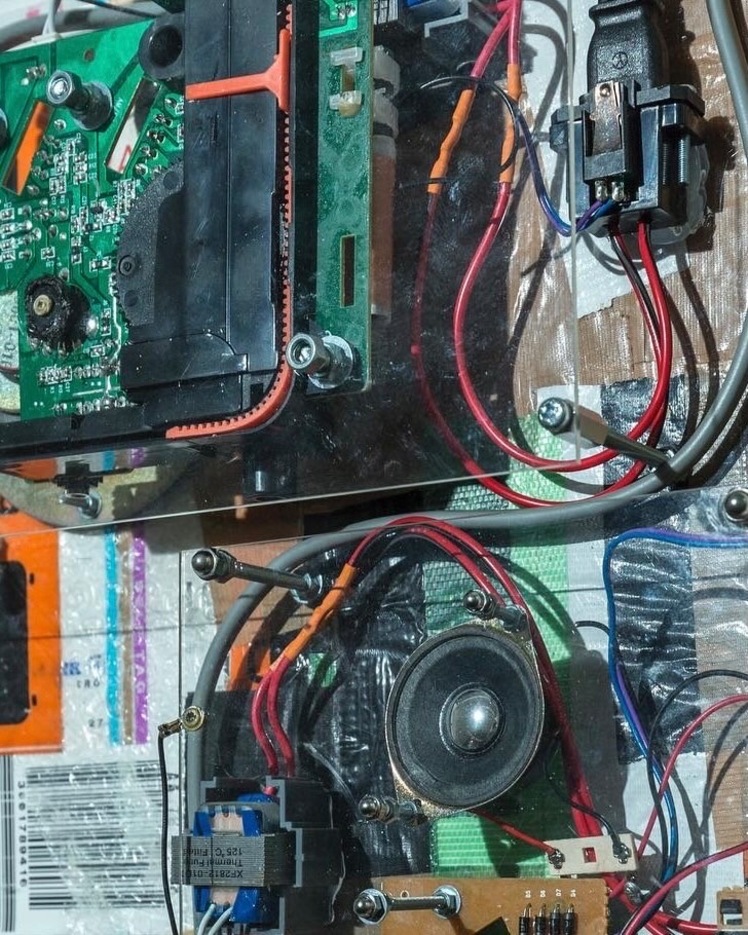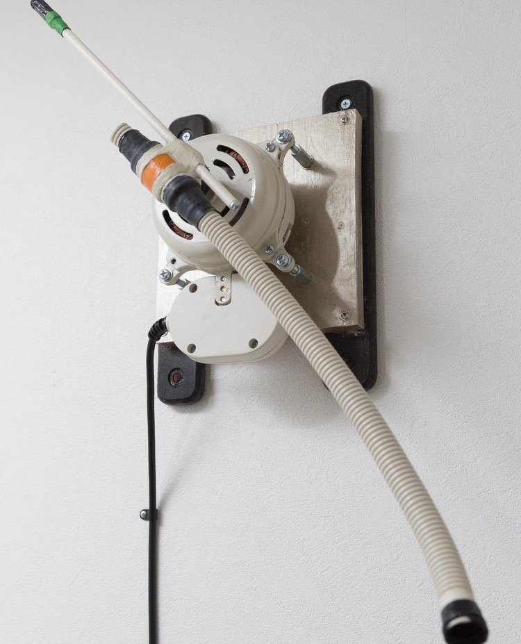 1993年頃から始まる私の作品製作の変遷は、平面絵画から始まり、光や音のインスタレーションやサウンドオブジェ、自作音具を使用したライヴサウンドパフォーマンス、と結果的に多岐に渡っているが、2020年のCOVID -19の世界的蔓延期以降、何故か自身のルーツである平面絵画製作、つまり絵を描く方向に移行し、ここ5年は蛍光灯を使用したインスタレーションワークやサウンドオブジェの製作、発表の頻度はめっきり減った。その事に何か明確な理由があったり、ましてや興味が失せた訳ではない。何なら数年前からいつ終わるともなく継続して作り続けている音の鳴る装置も数点あったりする。(今回 新作として展示されるものはそのひとつ)