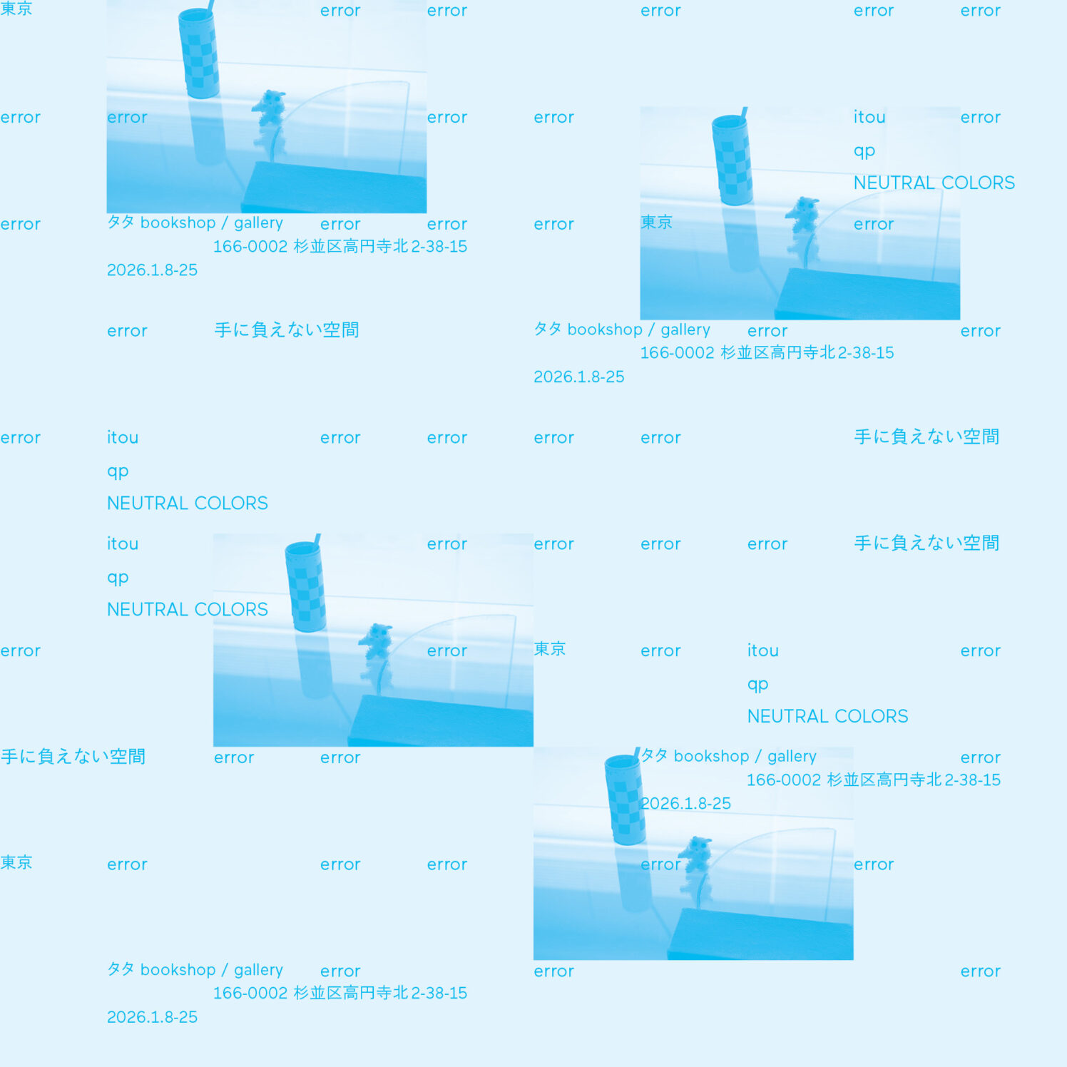 2026年1月8日(木) – 1月25日(日)の期間、「error 手に負えない空間」を開催いたします。